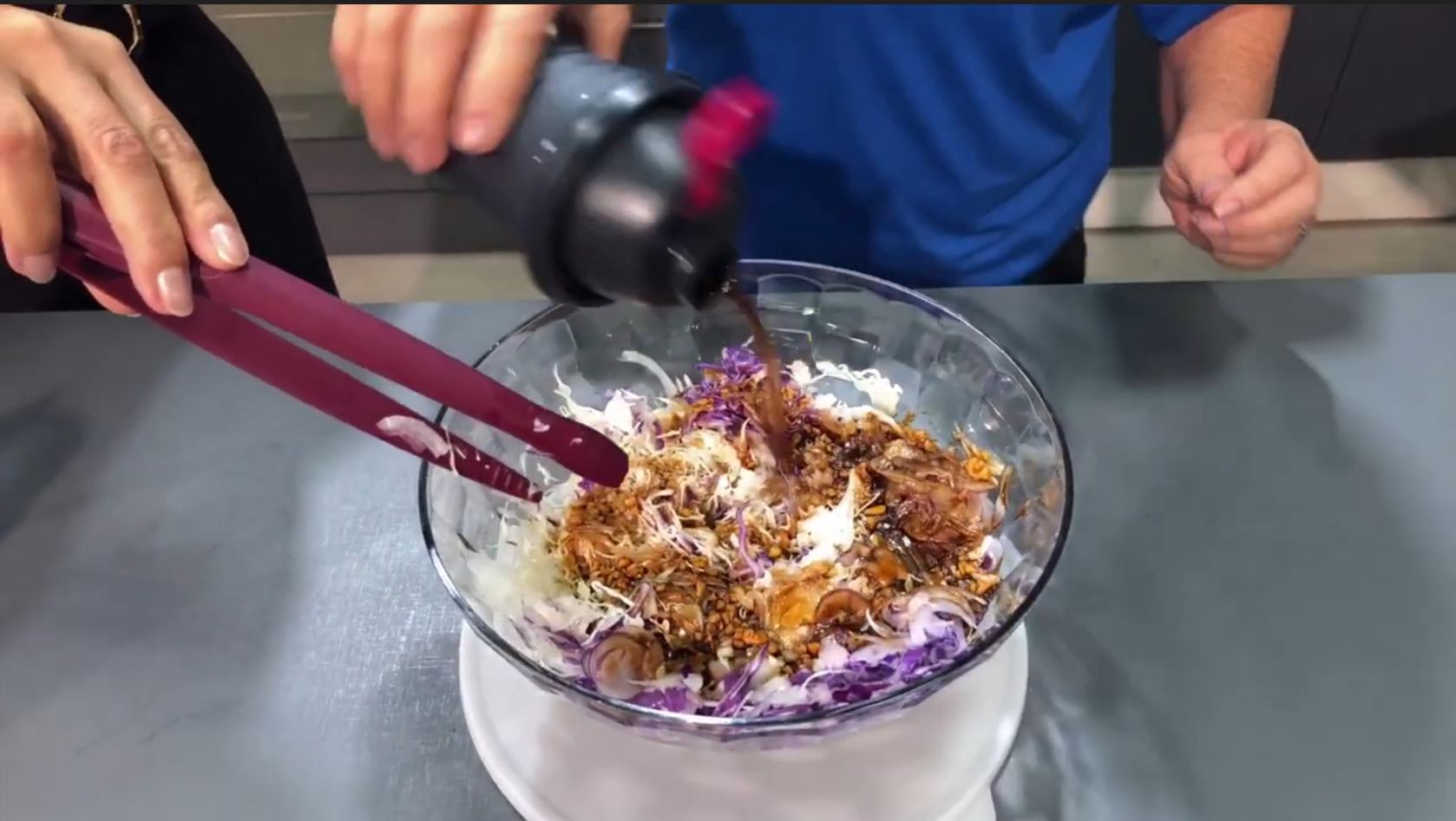 • No Quick Shake, misture o suco de limão, azeite, shoyu e o gengibre triturado.