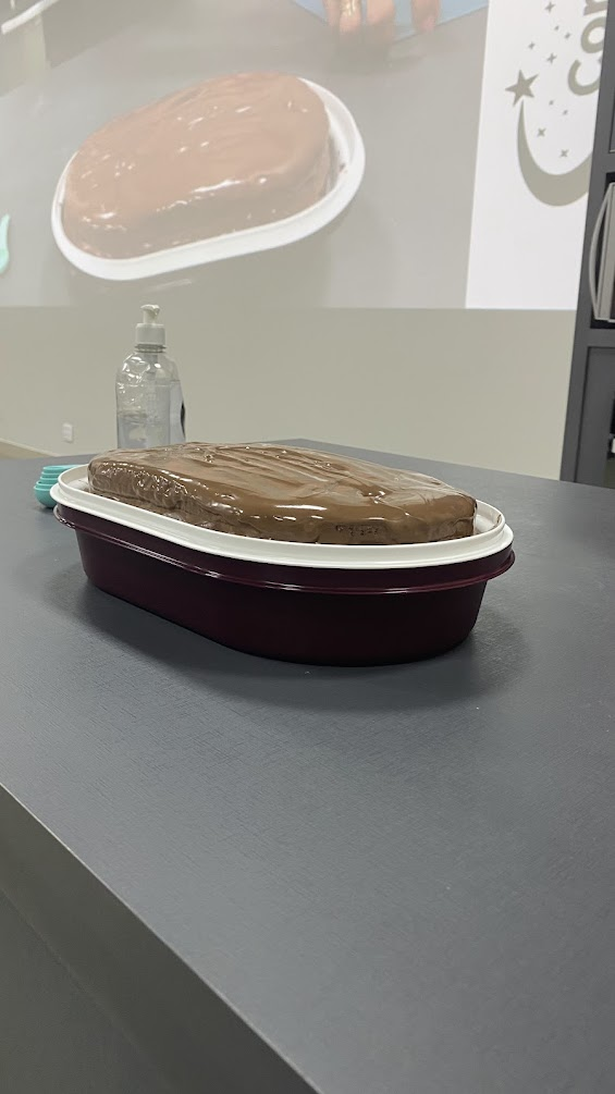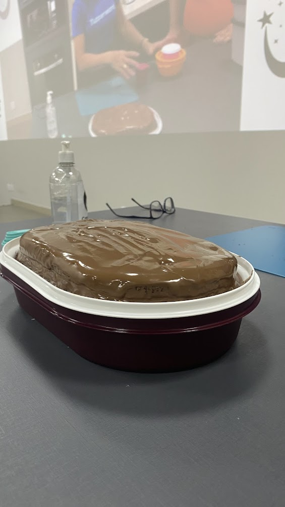 - Jogue o chocolate por cima do bolo para fazer a cobertura.