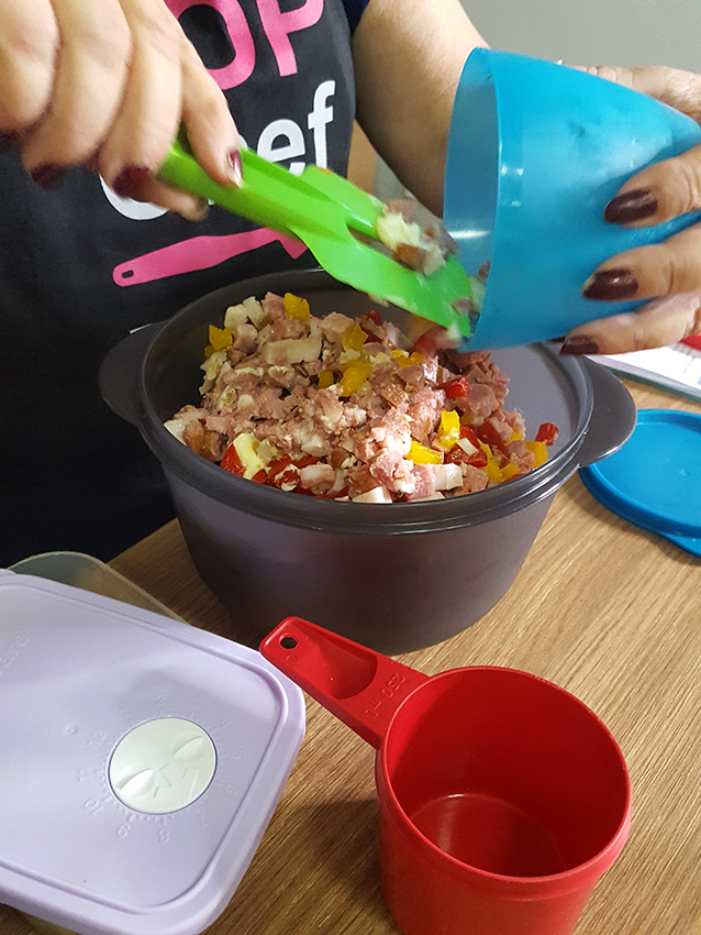 • 1 colher de Medida Tupperware 25ml cebola picada½