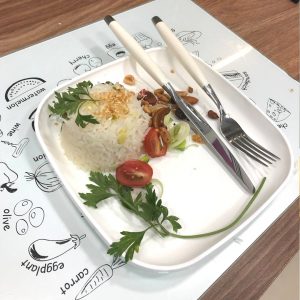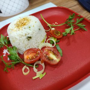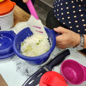 – Finalize moldando o arroz na Xícara de medida Tupperware (tamanho da sua preferencia) colocando no Prato Post me.