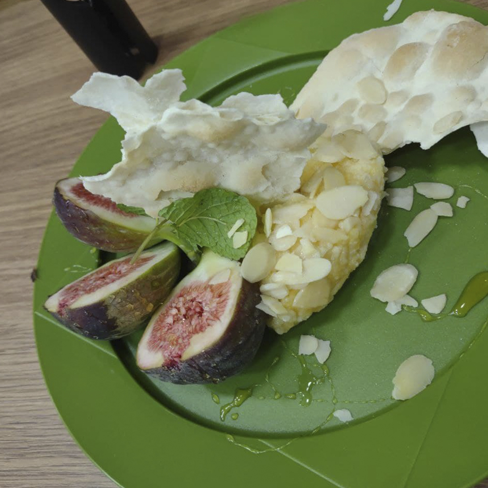 - Corte o figo ao meio e decore no Prato Outdoor junto com a crostata.