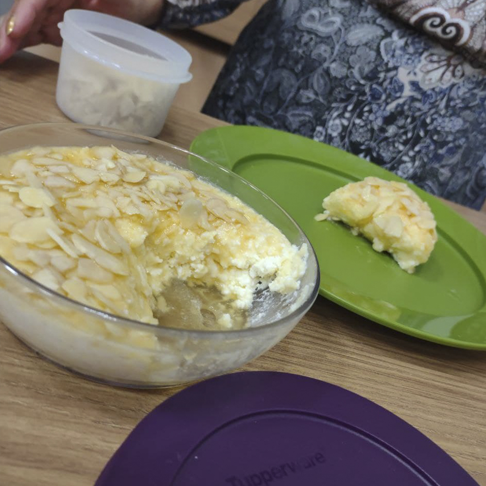 - Reserve em uma Tigela Clear 750 ml. Regue com o mel e adicione amêndoas em lascas.