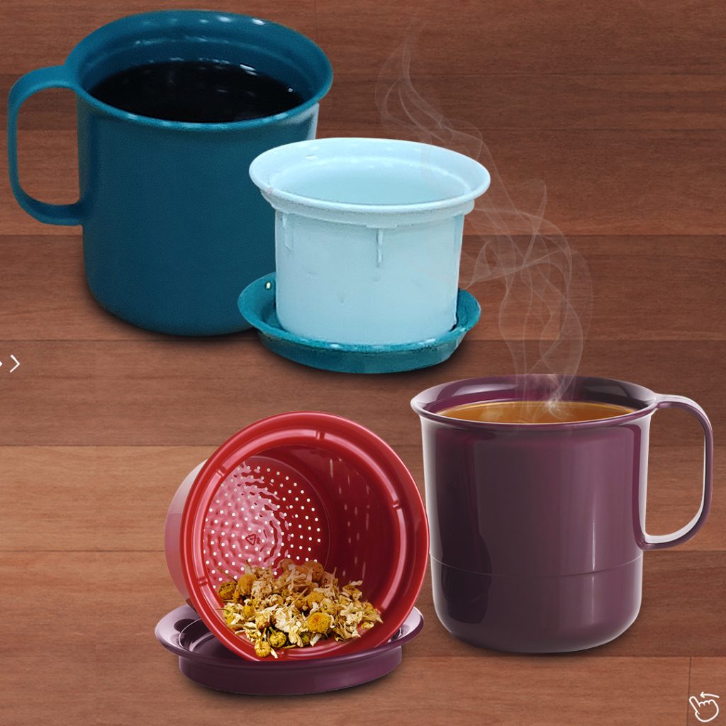 - Em uma Caneca com Filtro 350ml adicione o gengibre, cravos, canela em pau e a mistura de suco (já aquecido);