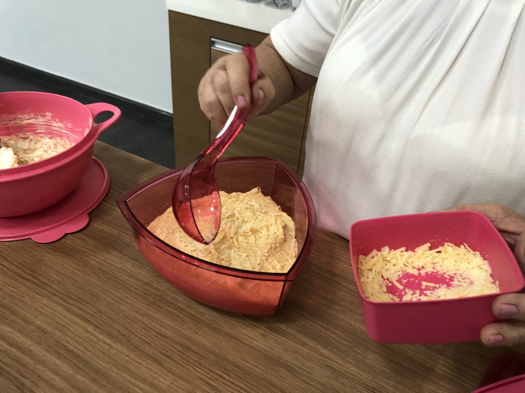- Após as batatas cozidas amasse com a ajuda do Amassador Tupperware.