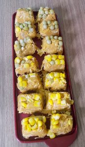 - 4 xícaras de medida Tupperware (120ml) farinha de milho flocos grande